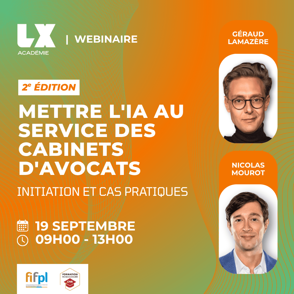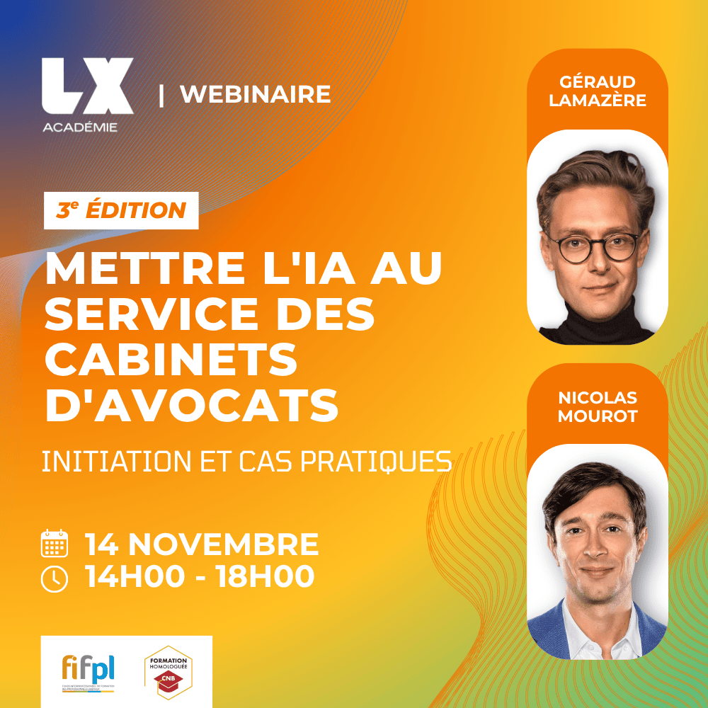 Vous avez manqué une formation qui vous intéressait ? Toutes nos formations peuvent être reprogrammées, et certaines formations passées peuvent être à nouveau proposées en INTRA. Contactez-nous à formation@lx.legal pour connaître les prochaines sessions ou organiser une formation sur-mesure, adaptée à vos besoins.